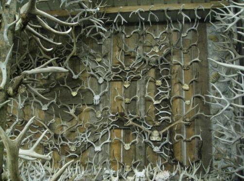 (3) There are smaller bull elk mixed in halfway the length of the wall.